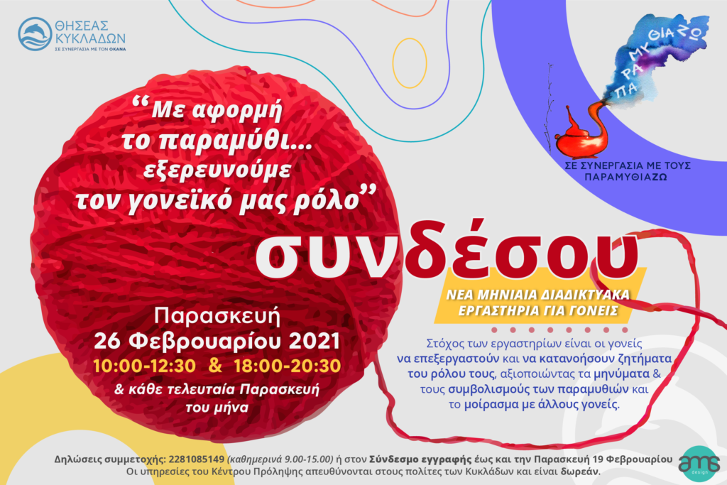 Νέα εργαστήρια για γονείς «Με αφορμή το παραμύθι… εξερευνούμε τον γονεϊκό μας ρόλο»: http://thiseaskyklades.gr/?p=4543