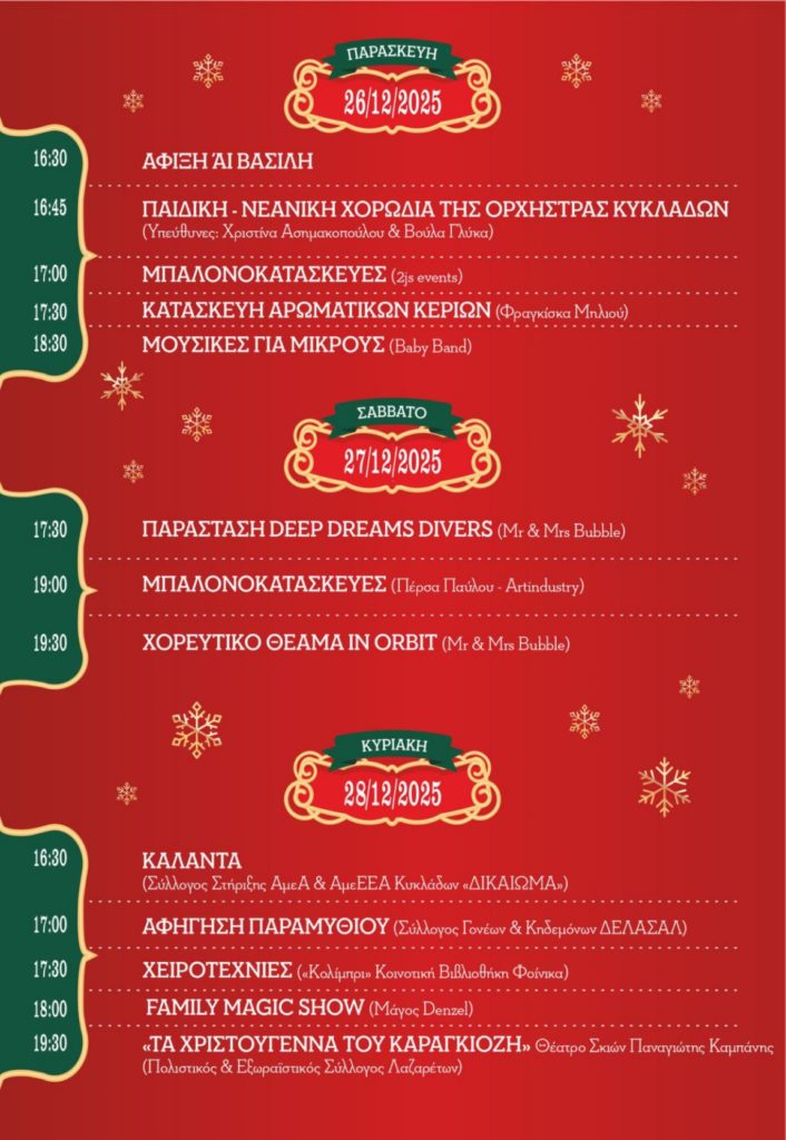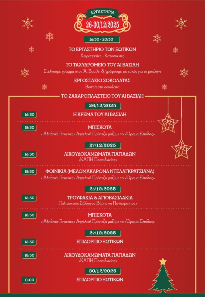 Παρακολουθήστε το αναλυτικό πρόγραμμα στη σελίδα Σπίτι του Αϊ-Βασίλη στο Facebook και τυχόν αλλαγές.