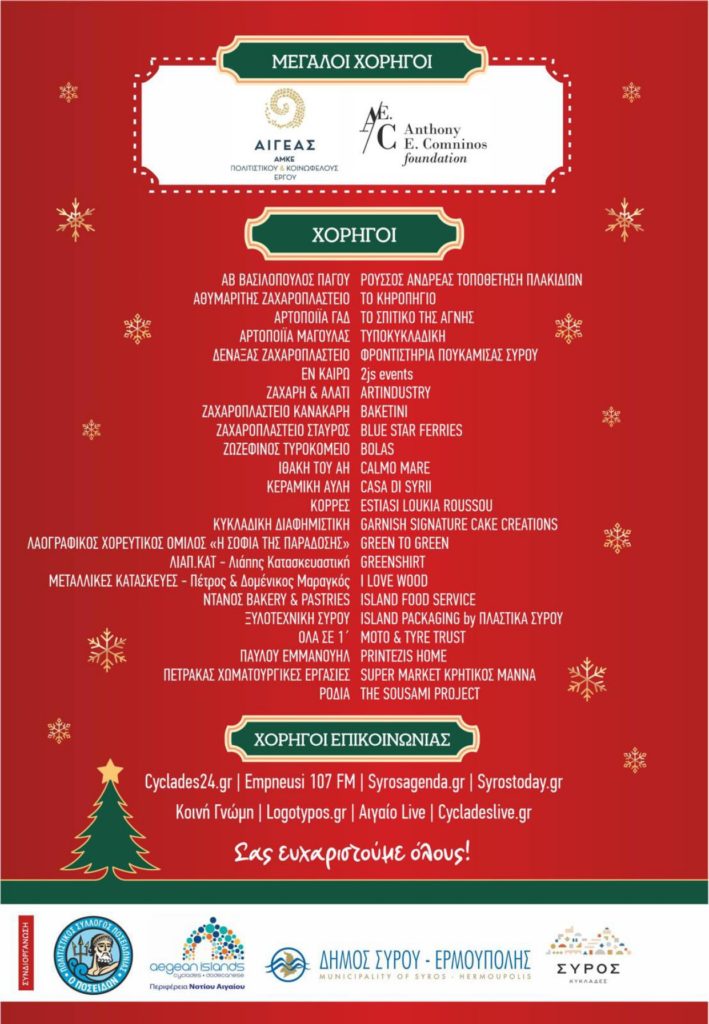 Μεγάλοι χορηγοί: Αιγέας ΑΜΚΕ, Ίδρυμα Αντώνιος Ε. Κομνηνός.